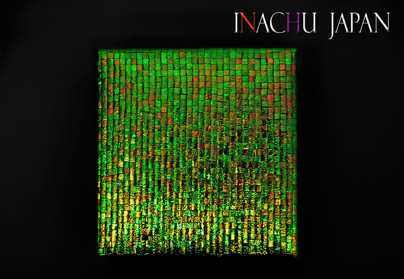 2ミリ角の玉虫蒔絵を全体に貼り詰めた作品です。